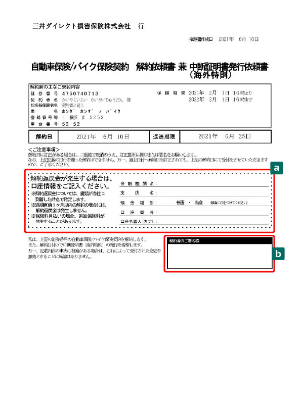 海外赴任に伴う自動車保険の中断証明書発行依頼書の記載事項 タイのおなかとせなか あの空の下で
